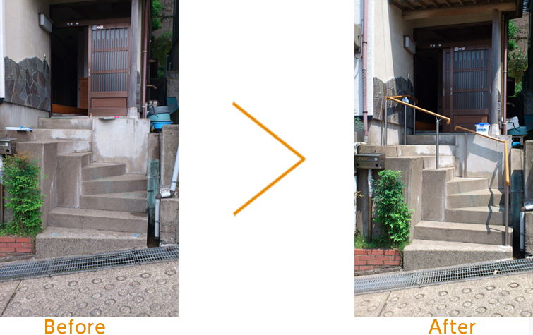 ずっと危険だった階段にアルミ製の手すりを設置しました。